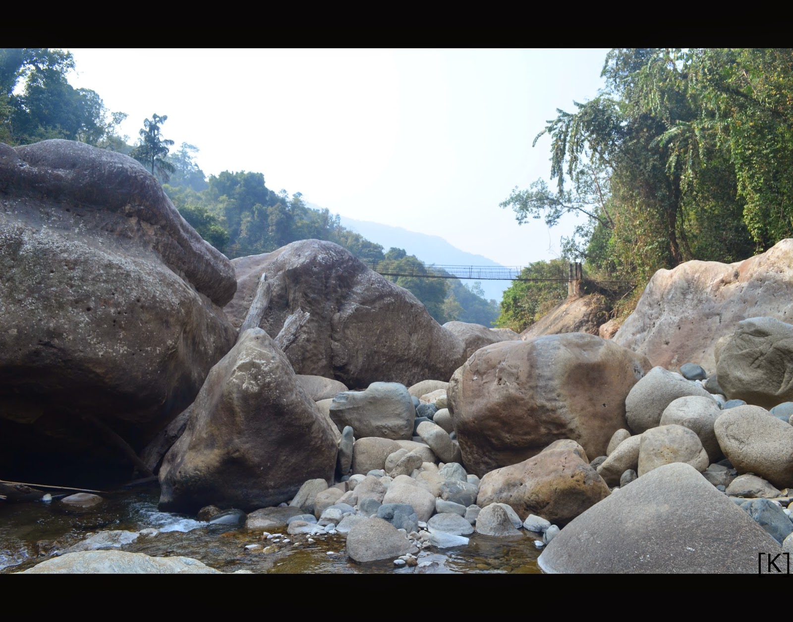Its too hard not to take a plunge in these crystal clear water pools but when you have a long trek ahead and not much time due to early sunset time , its wise not to waste much time. The views however are breathtaking, even though we had done this type of treks in the past , this one was different due to massive size of the buldors . Our guide abniss due to his smaller structure was finding it easy to make his way through small gaps and holes for us it was not that easy but hell lot of enjoyment.. After close to 2 hours we reached the hanging bridge before village nongriant . Hanging bridge is something we havent experienced before we walked past it without any difficulty but then realised that our feet were trembling ,body's natural reaction to the height , we got used to it after the first one and was throughly enjoyable.